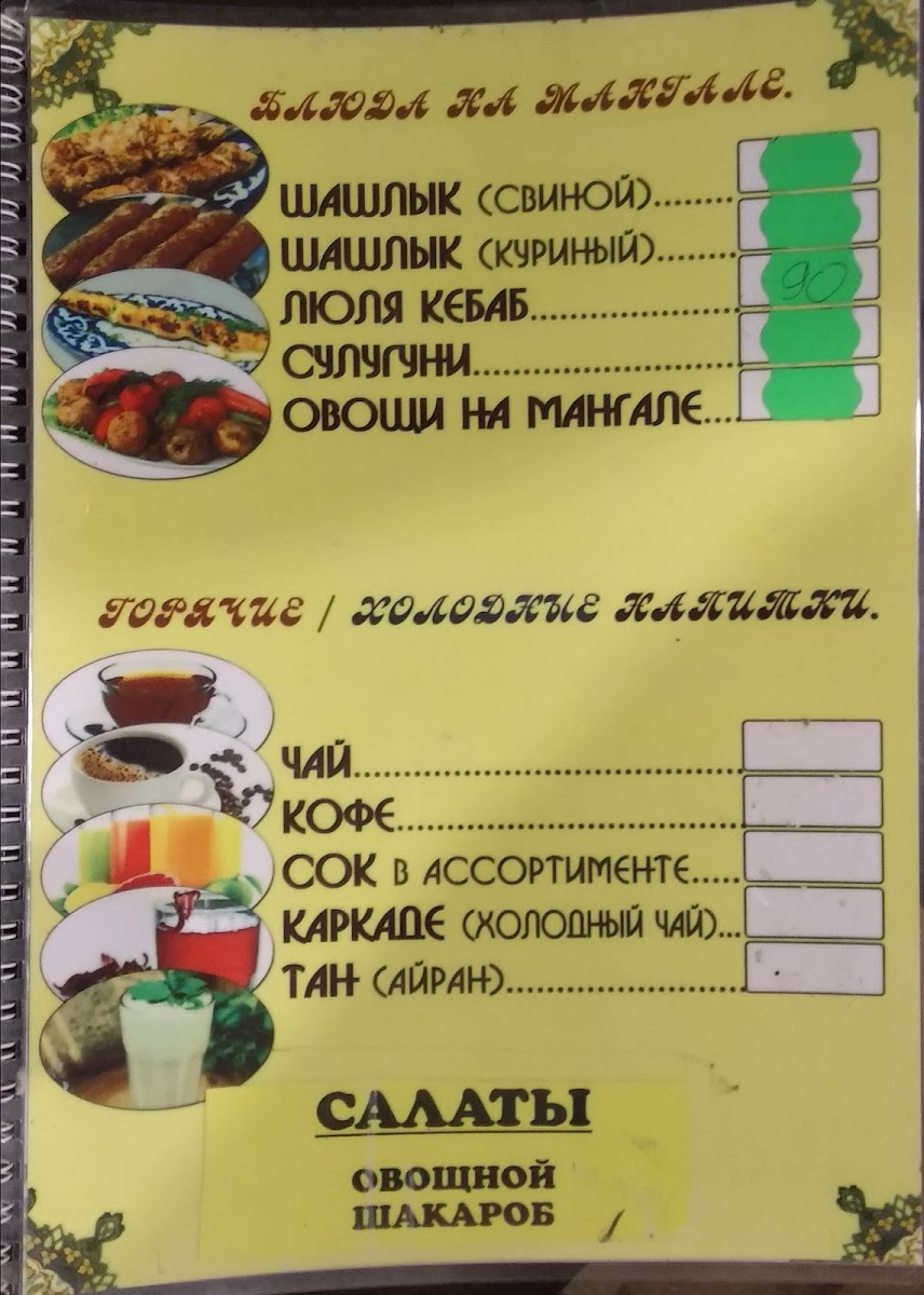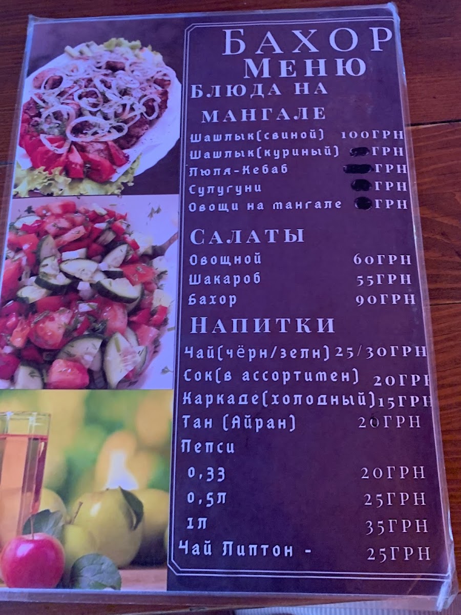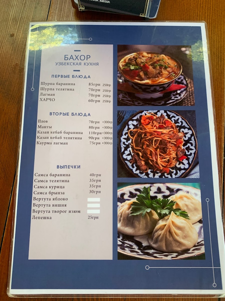 Uzbetsʹka Kukhnya 'Bakhor' Menu